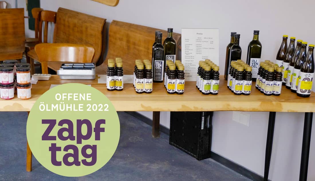 ° Mohn­öl, Kür­bis­kern­öl, Leind­ot­ter­öl, Senf­öl und Basi­li­kum­öl wer­den bereits in Fla­schen abge­füllt sein. °