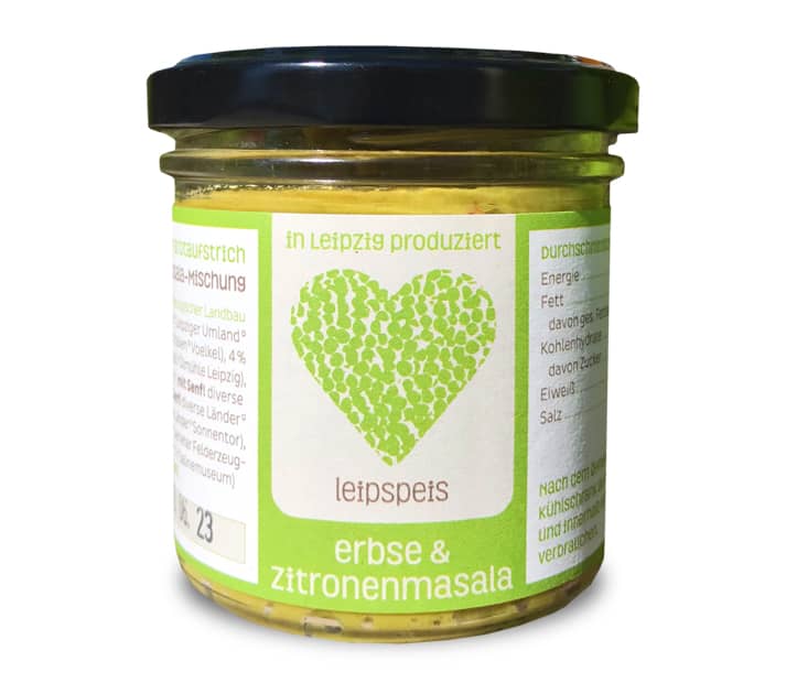 Zutaten und Herkunft: 55 % Erbse * (Leipziger Umland ° Biohof Müller), 17 % Zwiebel * (Leipziger Umland ° Biohof Müller), 13 % Wasser, 6 % Zitronensaft * (vorwiegend Italien ° Voelkel), 4 % Sesammus * (Mexiko ° Rapunzel), 4 % Rapsöl * (Liemehna / Ablaß ° Ölmühle Leipzig), Zitronenöl * (Sonnentor), Energie-Massala-Gewürzmischung * (mit Senf! diverse Länder ° DirektVomFeld), Massala-Gewürzmischung * (mit Senf! diverse Länder ° Bazar Manufaktur Leipzig), Curry-Mischung * (mit Senf! diverse Länder ° Sonnentor), Knoblauch * (Leipziger Umland ° Ökohof Groitzsch & Spanien ° Demeter Felderzeugnisse), Chili * (Leipziger Umland ° Biohof Scholle), Salz (Halle / S. ° Salinemuseum)